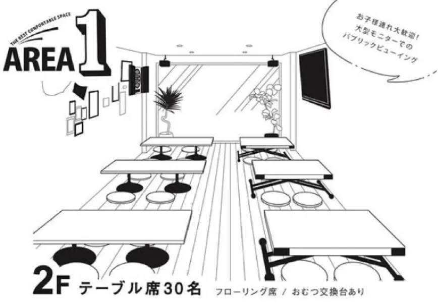 2階は、家族や仲間と一緒に楽しめる広々とした空間。子どもも大人も安心して過ごせる、やさしい雰囲気とこだわりのメニューをご用意しています。 週末のごはん会や、団体でご利用にもぴったりです。