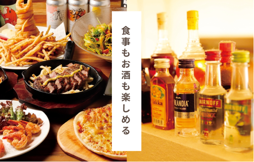 1階は、にぎやかすぎない、ちょうどいい落ち着き。 お酒を片手にひと息ついたり、軽くごはんを楽しんだり。 のんびり過ごしたいあなたにぴったりのたまり場です。