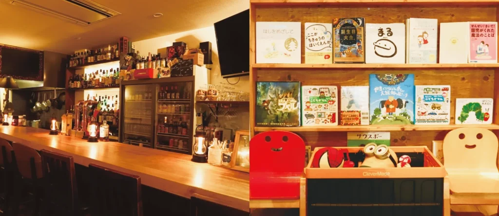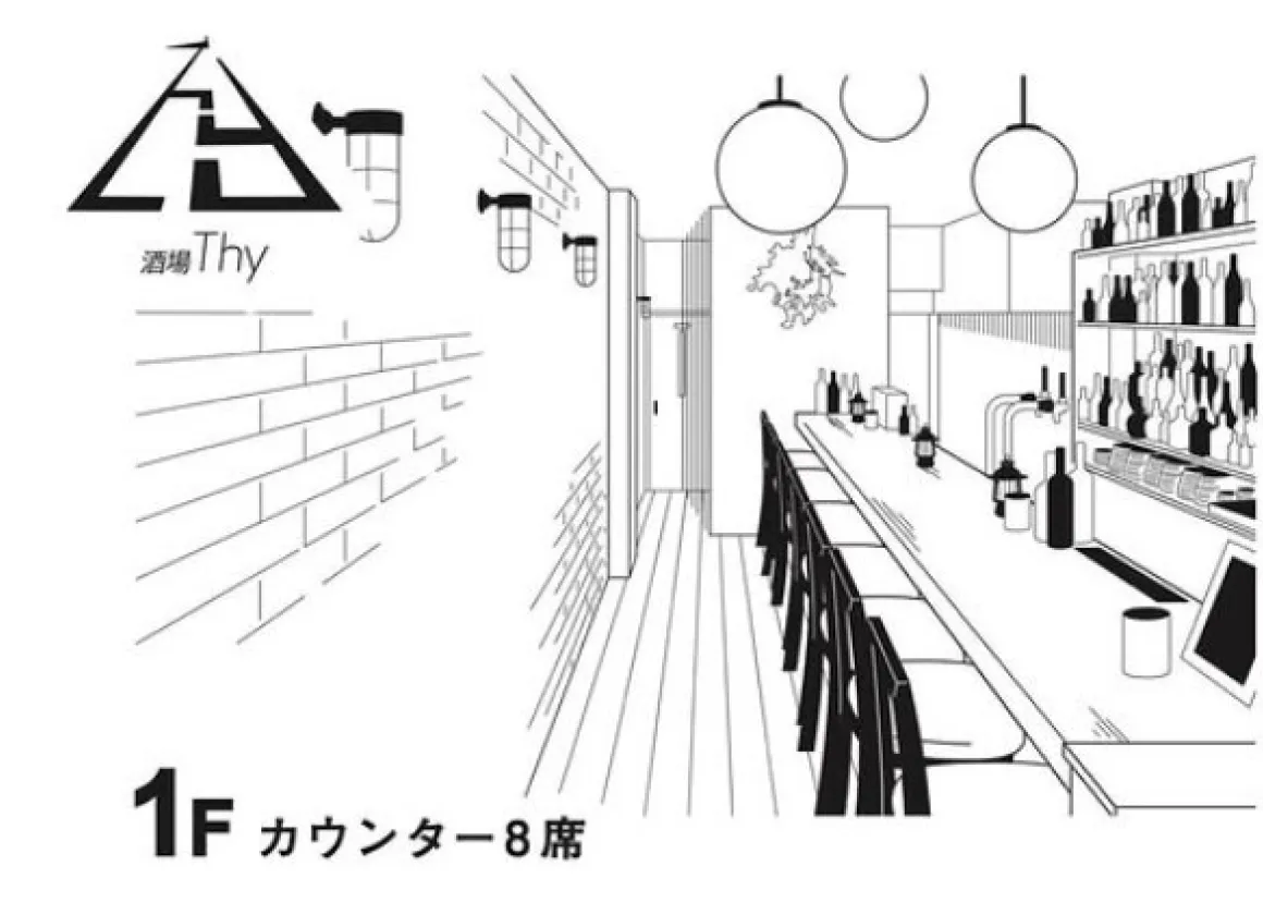 エリアワンは「1F:酒場 Thy」「2F:AREA1」という2つの空間からなる、昼も夜も気軽に立ち寄れるユニークなお店です。